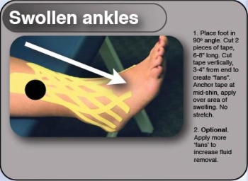 On võimalik teipida ka vedelikupeetuse leevendamiseks, mis tihti väljendub jalgade tursena. Samuti võivad tekkida lihaskrambid, näiteks säärelihastesse. Kinesioteip parandab lümfi- ja vereringet, soodustab drenaaži.